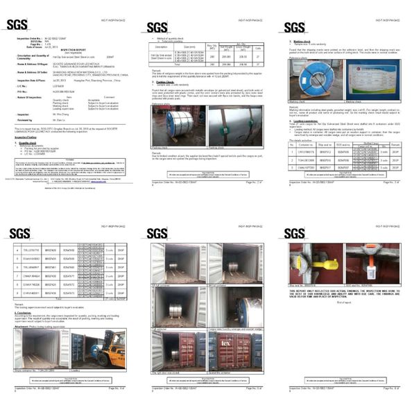 Épaisseur, largeur, poids net, poids de la bobine, emballage, revêtement en zinc/AZ, épaisseur du revêtement de peinture, tolérance à la couleur ΔE≤1, brillant, test de flexion, test d'impact 9J, test MEK 100/50, HRB, résistance au rendement,Résistance à la traction, test d'allongement, de dureté, de QUV, etc.